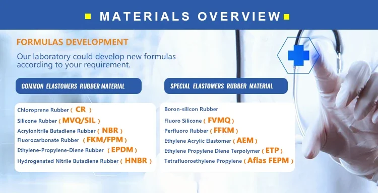 •Custom materials to meet specific color, fluid resistances, or physical properties.